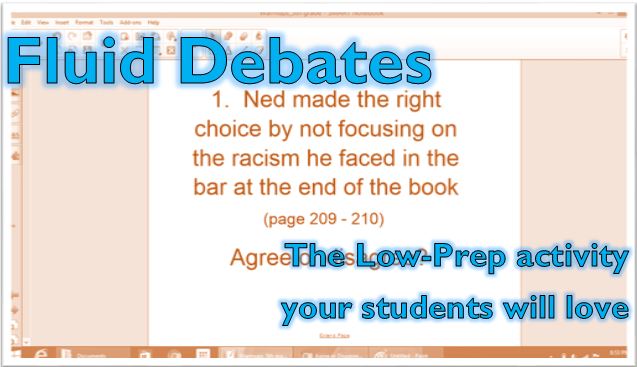 Fluid Debates are one option that I started using this year, and my kids absolutely love them. This is something they actually BEG for – I had a class promise to be quiet during their vocab quiz if they could do a Fluid Debate later!