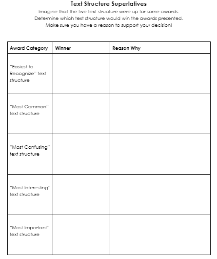 - It brings energy and excitement to even the most boring of topics (like text structures!)